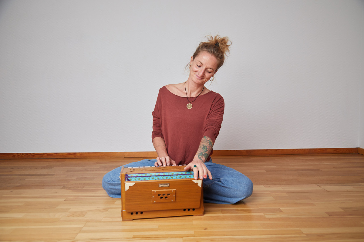 Harmonium spielen und Mantren singen gehört zum Yoga sowie Annas Leben.